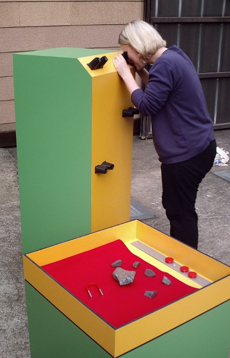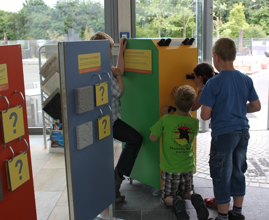 11 An einer Station kann man die magnetischen Eigenschaften von Steinen testen.