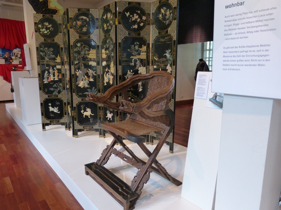 36 Chinesischer Paravent und Drachenklappstuhl in der Abteilung „wohnbar entfaltet“